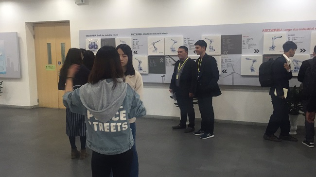 ABB机器人被誉为“工业机器人四大家族”之一,泰国师生对这次参观都非常期待,上午9点,早早来到了位于上海浦东康桥工业区内的上海ABB工程有限公司。师生们首先参观了公司的历史长廊,了解到ABB机器人的发展历史;然后参观了ABB公司的Yumi生产线、绝对精度测试站、控制柜自动化生产线、应用中心测试站,首次亲身体验到了工业机器人的生产、安装、调试以及检测等环节,对工业机器人有了全新的认识;最后中泰职业教育合作交流团与公司人员针对码垛机器人、喷漆机器人等的应用进行了讨论交流。