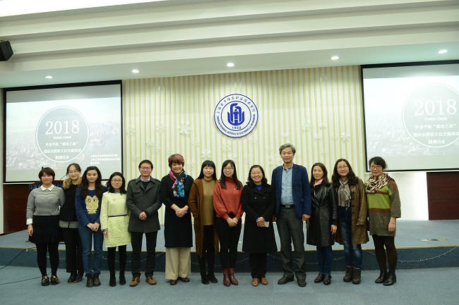 下午六点,中德C楼108多功能报告厅热闹非凡。外语学院副院长肖潇老师、党总支副书记吴亚人老师、副院长邓玉华老师、国际交流部副处长邱娟老师与教务处副处长戴玉珍老师以及外语学院德语系全体教师、上海工商外国语职业技术学院全体德语老师、两校德语系在校生、全体德国交流生和部分中德与工程技术学院师生参加了本次文化交流晚会。