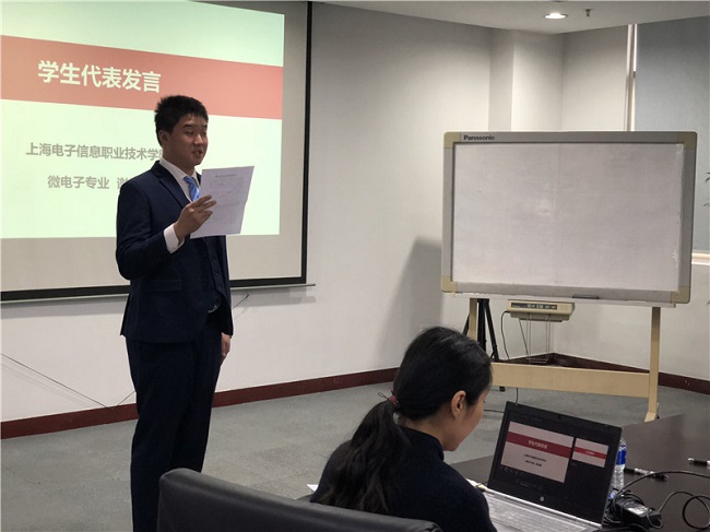 仪式上,电子技术与工程学院副院长李军锋介绍现代学徒制试点工作背景及开展情况。仪电智能电子技术总监李欣华介绍公司情况和行业前景。微电子专业学生谢佳麒代表全班同学发言,感谢学校和企业提供的平台,并立志在实习过程中与岗位要求无缝对接,学习系统的专业知识和操作技能,做到学有所长、学有所成、学以致用。方林中副校长从理解内涵深化合作、合作共赢责任共担、完善校企合作育人机制和培育新时代“大国工匠”等几方面对学校、企业和学生三方在合作过程中的责任与义务进行了强调。洪斌总经理就将来校企两方共同做好学生实训与就业工作,真正实现校企长效合作、互利共赢提出殷切期望。