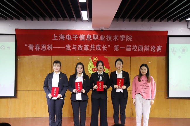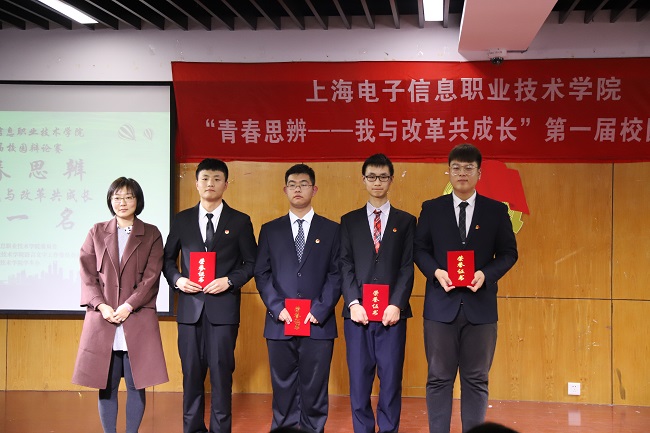 为贯彻落实十九大和全国教育大会精神,结合改革开放40周年,鼓励广大青年学生通过辩论的方式增强思辨能力、表达能力,在辩论中学习成长。2018年11月29日晚,由校团委和校语委办共同主办,校学生会承办的“青春思辨——我与改革共成长”第一届校园辩论赛决赛在I401教室成功举办。出席本次大赛并担任评委的有校团委书记蔡林洁老师,教务处副处长周玉霞老师,学工部校易班发展中心指导老师王琳老师,同时莅临本次大赛的还有校团委副书记何川老师、各二级学院团总支书记或负责人以及各二级学院学生代表。