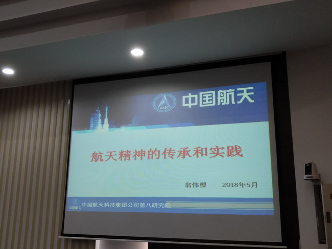 2018年12月20日晚,上海航天局运载火箭总指挥、上海市劳动模范翁伟樑研究员以“航天精神的传承和实践”为主题,给“匠心中国”课程班的同学做了一场引人入胜的精彩报告,把同学们吸引到那个完全陌生而又神秘的领域。报告由马克思主义学院副院长茌良计主持,马克思主义学院部分教师和学生160人聆听了这场报告。