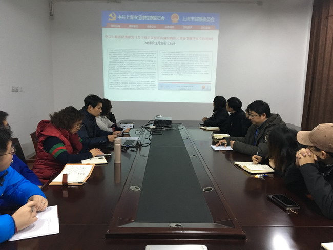 会中,谌明举老师带领大家全文学习了《中共上海市纪委印发“关于持之以恒正风肃纪确保元旦、春节廉洁过节的通知》及学院《关于2019年元旦、春节期间严格落实中央八项规定精神,纠正“四风”工作的通知》,通报了近期《上海市6起违反中央八项规定精神问题》,要求大家严格按照通知精神,严格自律,廉洁从教,并做好对部门员工的宣传教育和督查检查;要求大家从通报的典型问题中汲取教训,引以为戒,做到心有所畏、行有所止,守纪律、讲规矩。党总支副书记凌航老师对大家提出工作要求:一是要求大家提高廉政意识与党性修养,增强抗腐防变能力;二是要求大家在资源建设、设备采购等工作中,严格执行工作程序,规范开展工作,提高警惕,不得接受请客吃饭和礼品赠予;三是春节期间,一定要廉洁过节,特别是班主任等群体要严于律己;对于出现违规违纪问题,执行“零容忍”,一律严肃予以处理。