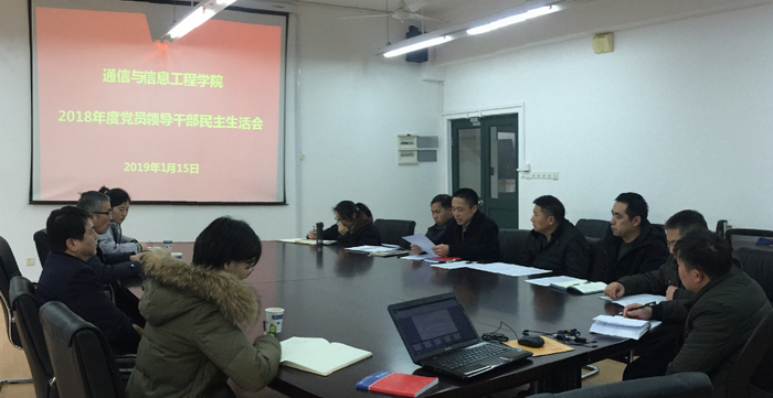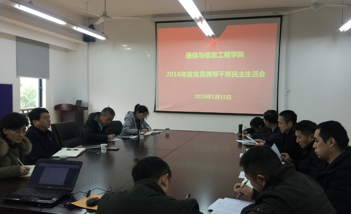 根据市委、教卫工作党委决策部署和学校党委《关于认真开好2018年度二级学院党员领导干部民主生活会的通知》要求,1月15日下午,通信与信息工程学院在J313会议室召开2018年度党员领导干部民主生活会。学校党委书记田钦、纪委副书记、纪检监察处处长施嘉斌到会指导,党委组织部沈瑞环、宣传部王欣一同出席。通信与信息工程学院领导班子、党总支委员、组织员参加会议,会议由党总支书记陈林河主持。