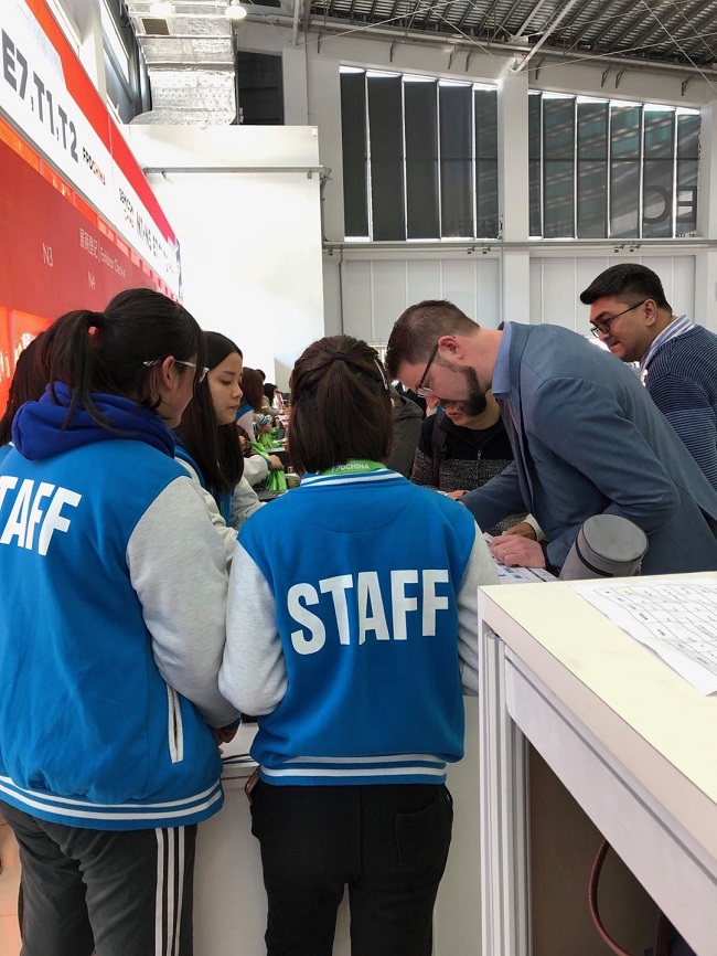 学生们分别于3月18日和20日分两批到达会展中心,在接受了简短培训后,每位学生明晰了自己的工作职责,主要包括国内外展商与观众接待、宣传、资料发放等一系列服务,工作时间为7:20-17:00。在为期一周的实训中,同学们遵时守纪,主动积极,尽职尽责,团结互助,有礼有仪,服务周到耐心,工作表现得到了合作企业上海汇展信息科技有限公司的高度赞扬,同学们各自收获了证明自己的实训证书。