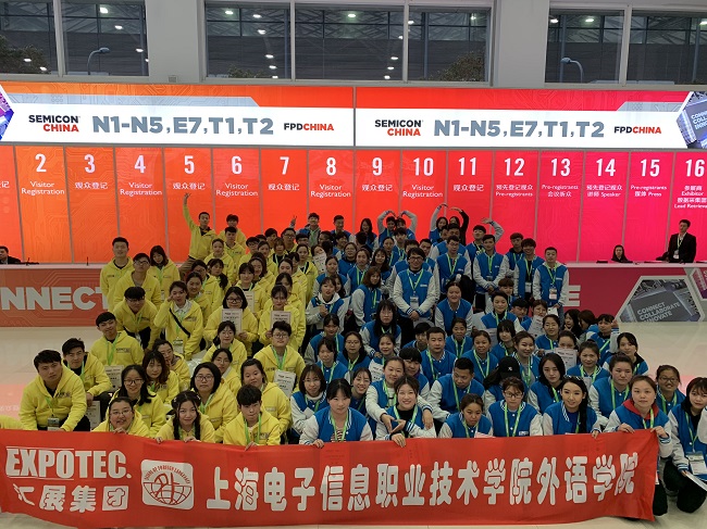 本次实训为上海新国际博览中心Semicon China展提供志愿者服务,由蔡青老师带队,谢晓莹同学为队长,同时由其他六位小组组长协助带队。为保证本次实训的顺利开展,英语系提前一个月就开始筹备,英语系主任陈丽君先后为18级全体同学召开两次实训动员大会,讲解实训要求、注意事项、仪表仪态、纪律规范,及实训结束后依据实训期间的工作表现进行考核。