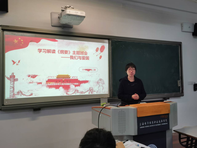 /span> 决赛中,各班参赛代表结合幻灯片、朗诵、视频、台下互动等多种形式,生动形象地展示了各班班会开展中的高光时刻与班级风采。19飞机机电1班的代表以爱国主义的精神为核心,带领其全班同学深层次解析了纲要的主要内容和学习重点,贴合实际提出作为祖国的新青年我们更要坚定自己的理想信念、志存高远、树立远大理想、为祖国的发展而不懈奋斗的号召。19通信1班的代表则展示了班级成员共同合唱《我爱你中国》的视频,以视频的形式作为汇报的结尾,引起现场师生的共鸣。19机电2班代表更是以刚刚结束的班级篮球赛中同学们团结合作、奋勇拼搏的精神,映射出中华民族不屈不挠、团结奋进、自强不息的精神,全面诠释了我院大学生的担当与激情。