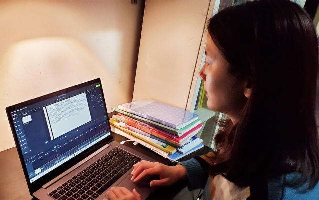 站在三尺讲台上,曾经在上海市和学院系统教学能力大赛屡屡获奖的她当仁不让,因为现场感让她更加自信。但是在摄像头面前录课,凌晨两点半一个人的“自嗨”却让她倍感寂寞。在这次密度大、时间紧的在线教学之前,她没有任何在线教学经验。为了保证教学质量,她开始一步一步学习,反复研究培训材料。工作量的增多、在家弹性工作无法保证固定时间集中高效、新的网络技术的学习应用使她的工作难度倍增。以前面对百八十号的学生她说话从不“吃螺丝”,在线课程则需要对内容高度精炼,比平时上课的教学语言水平要求更高。刚开始录课时,40分钟的课有时会因为其中的某个环节把控不好要反复重录,花上好几个小时录一节课是常有的事。