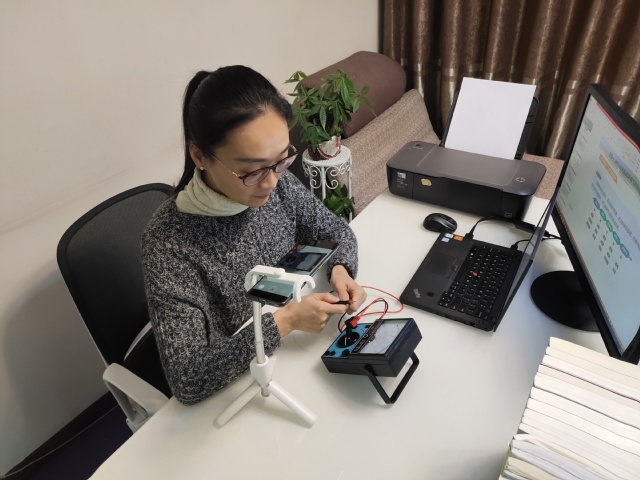 /span> 录播是个“重头戏”。/strong>从资源的准备到上课流程的设置,再到课程作业和论坛互动问题的发布,都需要从学生的特点和需求出发,培养学生利用资源进行自主学习的能力。录播的过程需要做大量的准备工作,吉老师利用显示器连接笔记本,通过扩展分屏提高工作效率,同时她利用家里的仪器和设备,录制演示视频辅助学生理解。在讲解万用表的认识与使用时,为了使学生通过屏幕更直观地了解,她借助手机支架录制万用表的操作视频,强化了学生的认知,提高了学生的学习兴趣。(作者:何佳莉 供稿单位:中专部)/span>/p>