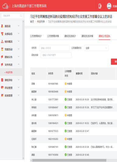 在不宜集中组织学习活动的情况下,离退休党总支充分运用市委老干部局推荐的“上海老干部APP”开展在线党日活动。3月20日,离退休党总支依托“上海老干部APP”和微信群,在线上开展“把初心落在行动上,把使命担在肩膀上”主题党日活动。离退休党总支将活动通知及过程通过“上海老干部APP”移至网络云端,通过线上学习不断提高政治站位,努力加强党性修养,切实把理论学习转化为现实行动。/span>/p> /span>/p> 离退休党总支按照学校要求,突出主题,以线上、线下相结合的方式展开内容丰富、形式多样的活动。深入学习习近平总书记在统筹推进新冠肺炎疫情防控和经济社会发展工作部署会议上的讲话,大家备受鼓舞,写下了学习心得。李海政老师说:“在以习近平同志为核心的党中央的正确领导下,举国上下团结一致,防控工作取得的成效,再次彰显了中国共产党员的担当精神和中国特色社会主义制度的显著优势!”潘丰枫老师说:“虽然不能亲自参加抗疫,但我们随时听从党的召唤,自觉遵守疫情防控的各项要求。”朱以奋老师说:“学习了习总书记的讲话精神,我更加坚信党会带领中国人民走向更加幸福的生活,坚信我们的祖国更加繁荣富强。”/span>/p> /span>/p> 特殊时期,离退休党总支运用“上海老干部APP”开展网络云端学习,让主题党日活动有了新意,让离退休老同志们能够跟上时代发展的步伐,享受信息时代给学习和交流带来的便利。老同志们纷纷表示现在上海的疫情防控情况向好,但思想上仍然不会放松警惕,会继续宅家做好防护,用自己的行动助力上海复工复产,会严格落实习近平总书记的重要指示批示精神,坚决贯彻党中央和市委的决策部署,发挥党员先锋模范作用,助力打赢疫情防控阻击战。(供稿单位:离退休党总支)/span>/p>
