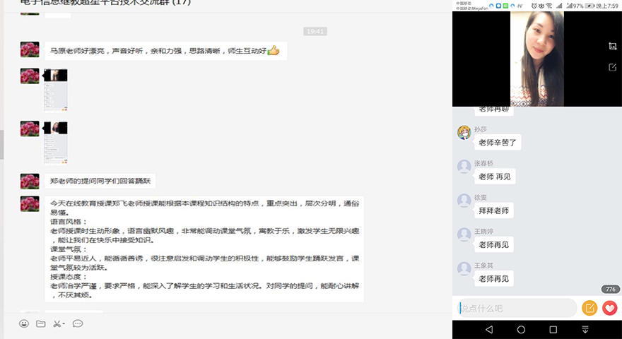 继续教育学院分别于3月20日、3月25日和3月26日组织全体师生进行全方位的课前大“演练”,包括怎样使用平台测试在线直播、录播、答疑、提交作业等所有环节。经过前期的精心准备,郑飞老师的《马克思主义基本原理》在4月2日下午17:30如约而至,与同学们在“云端”相聚。为确保在线教学总体平稳有序,学校督导、继续教育学院领导、老师进入课堂与学生一同体验在线教学效果,现场解决相关问题,为在线教学的顺利进行保驾护航。郑老师用通俗易懂的语言,理论联系实际深入浅出地讲解,同学们纷纷为老师点赞,积极参与课堂互动。时间过的飞快,下课了同学们还意犹未尽,恋恋不舍地与老师再见。在线学习给大家带来了不同的学习体验。数据显示学生学习热情高涨,有的学生深夜还在认真学习课程。