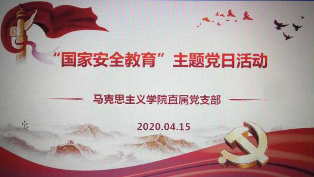 4月15日是全民国家安全教育日,为深入学习贯彻习近平总书记关于坚持总体国家安全观的重要论述,大力宣传国家安全的法律法规,进一步增强党员教师的国家安全法治意识,4月15日下午,马克思主义学院通过腾讯会议平台开展了“国家安全教育”主题党日活动。马克思主义学院全体党员参加了活动,活动由马克思主义学院直属党支部副书记江龙主持。/span>/p> /span>/p> 江龙老师首先传达了学校全面从严治党工作会议精神,并结合部门实际进行了解读和部署。随后,概论教研室主任郭彦军老师带领党员教师学习了《习近平总书记在统筹推进新冠肺炎疫情防控和经济社会发展工作部署会议上的讲话》和《/span>“4·15全民国家安全教育日”专题学习材料》。他指出要在思政课教学中及时嵌入习近平总书记最新讲话精神,尤其要突出我国在疫情防控和复工复产中所体现的制度优势,以及国家安全中公共卫生安全和生物安全的重要性。其他党员教师纷纷谈了自己的学习体会。 /span>/p> 这是一次在疫情防控形势下在线开展的主题党日活动。活动的开展使全体党员教师进一步明确了学院在学校推进全面从严治党中的责任担当,进一步凝聚了疫情防控形势下有效推进教育教学工作的共识,进一步深化了对新形势下总体国家安全观的科学认识。(/span>作者:刘学飞 供稿单位:马克思主义学院)/span>/span>/p>