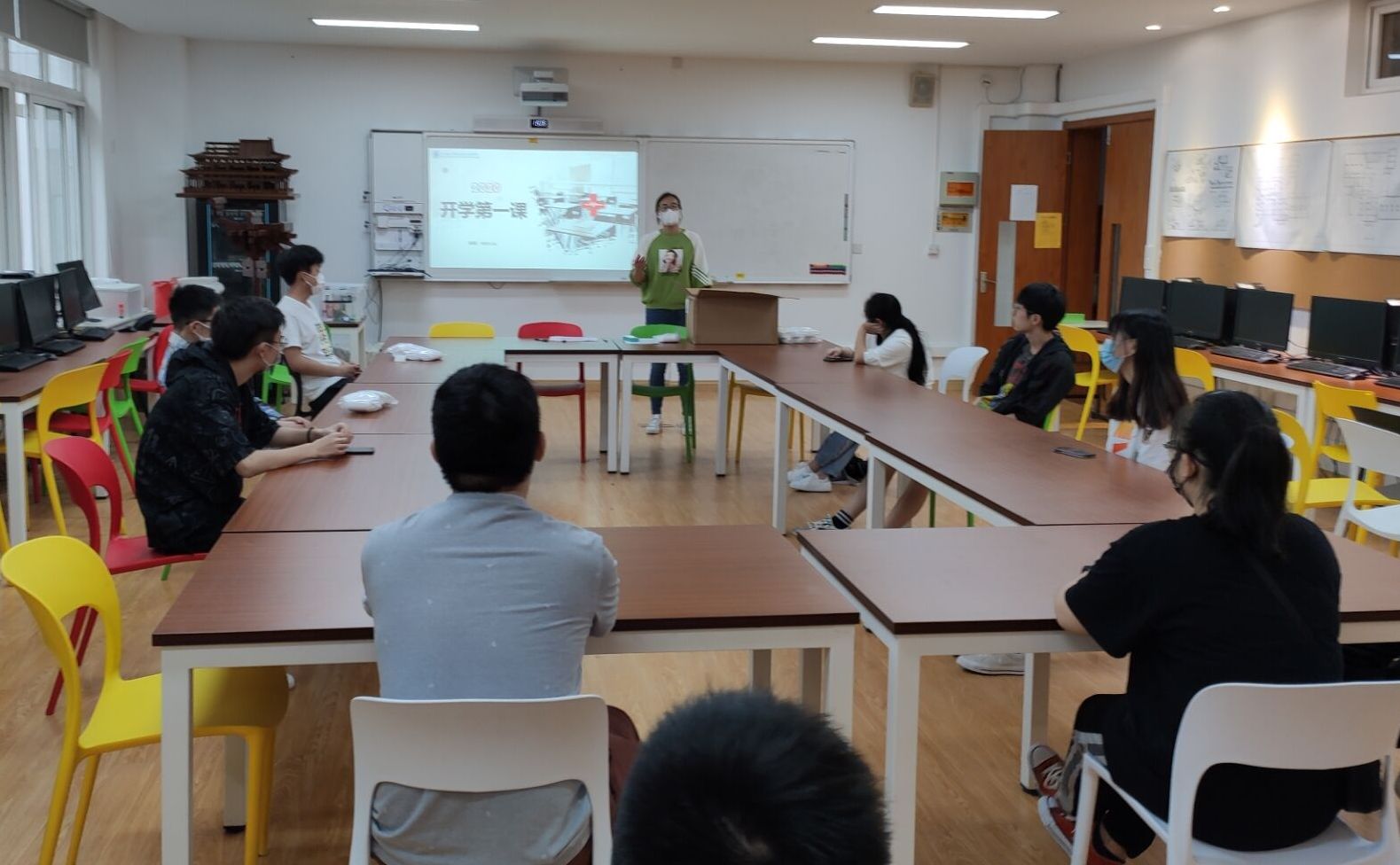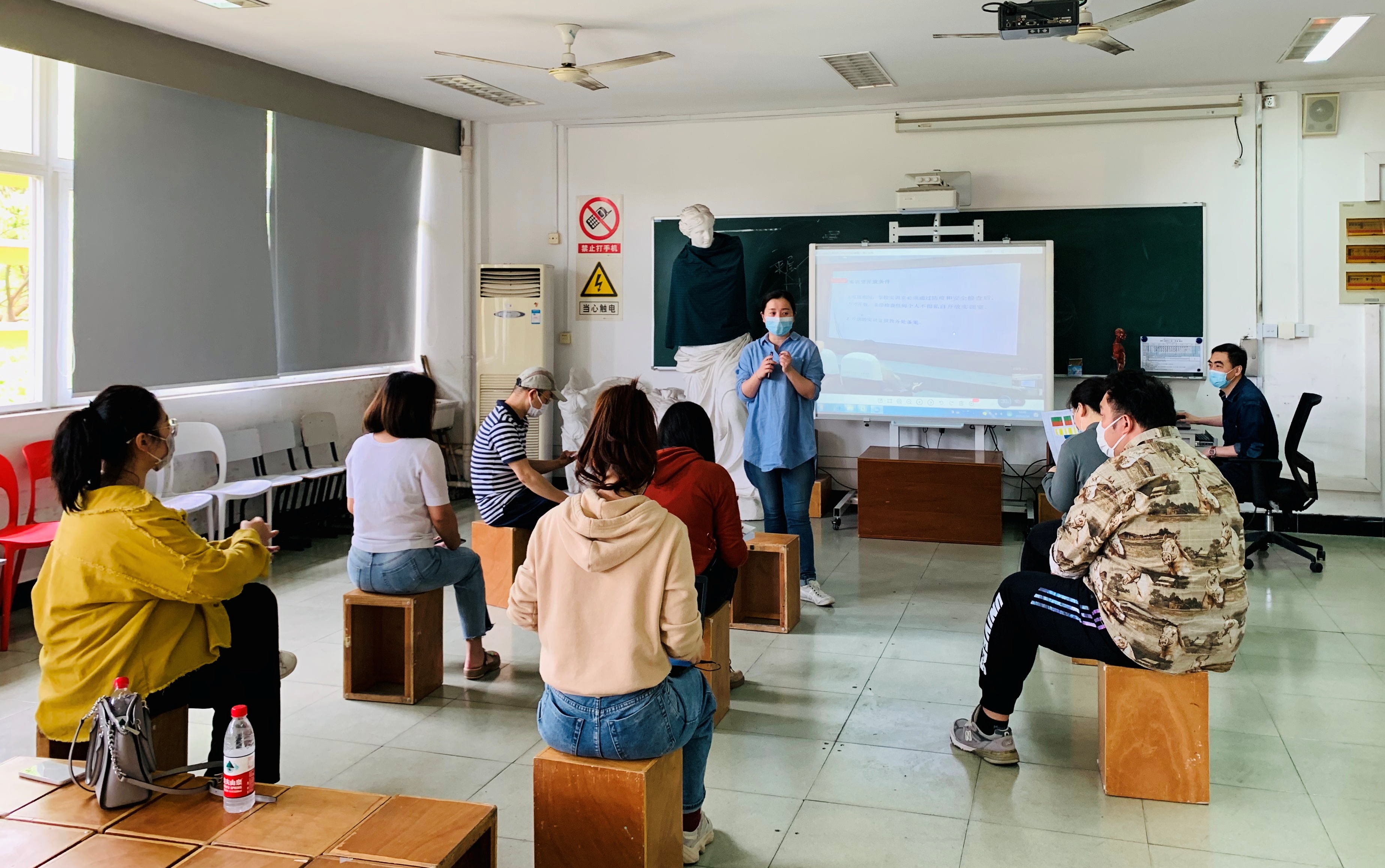 开学前一周,设计与艺术学院组织专任教师、辅导员和实训室管理员对实训室场地进行了卫生清理,并将筹备好的防疫物资整理到各个实训室入口处,对疫情防控期间线下教学的实训室管理及上课期间的注意事项进行了培训。