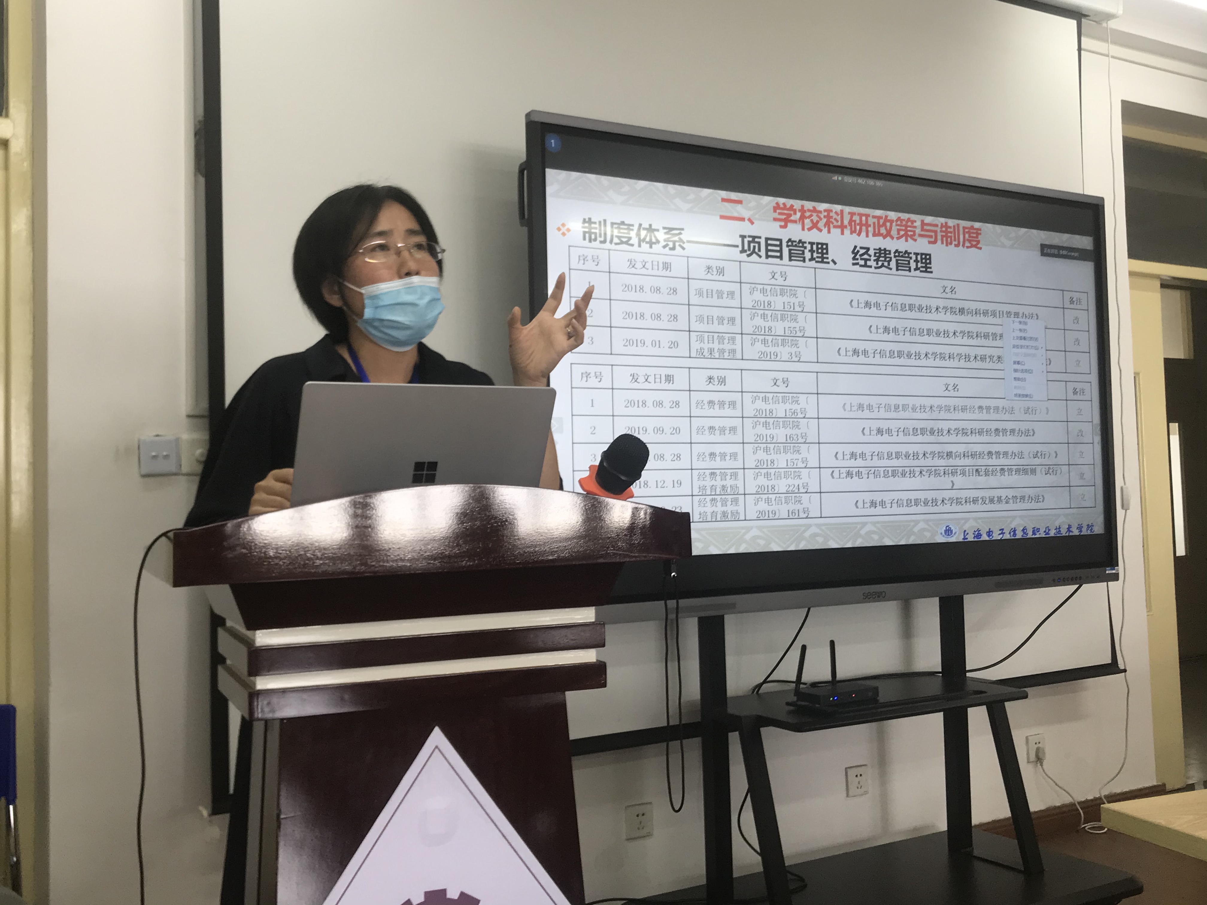 /span> 培训内容主要由三个部分组成。第一部分的主讲人是科研处副处长张迎春老师。张老师/span>从年度科研考核结果统计分析的视角向大家呈现了学校近两年的科研工作情况;围绕学风建设、学术评价、项目管理、经费管理、成果管理和培育激励等几个方面对学校科研制度体系进行了介绍,对主要的和新的科研政策及其走向趋势进行了解读,特别强调了其中关键性的内容;对科研项目的类别和级别的界定进行了补充说明。