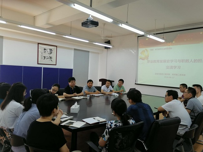 2020/span>年/span>6/span>月/span>17/span>日中午,通信与信息工程学院教师第二党支部在/span>J313/span>会议室开展/span>/span>“四史”学习教育主题党日活动/span>,主题为“职业教育发展史学习与职教人的担当”。学校党委书记田钦到会指导,组织部杨烨萍老师陪同与会,教师第一支部全体党员参会。党支部书记朱冰主持并领学。