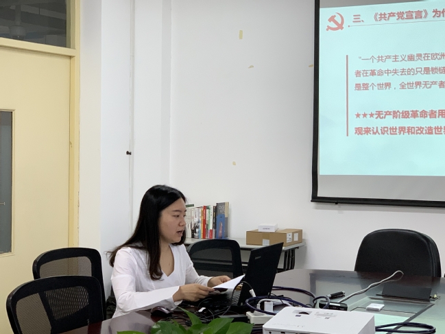 “一个幽灵,共产主义的幽灵,在欧洲游荡。……”这深入共产党人骨髓的文字,它强有力的呐喊响彻世界,极富预见性的思想流传百年。在“四史”学习教育如火如荼开展的过程中,在建党/span>99/span>周年即将到来之际,机械与能源工程学院中心组于/span>2020/span>年/span>6/span>月/span>29/span>日集体重温了《共产党宣言》,品读经典,回首初心。/span> 会上,党总支副书记倪娜对《共产党宣言》进行了导读,带领大家一起学习了它的产生过程、主旨精神、伟大意义及对中国的影响。倪老师说到,马克思、恩格斯通过《共产党宣言》分析了当时西方存在过的和正存在着的各种各样无产阶级理想、口号、形态,提出了科学的无产阶级革命的理论和主张,为无产阶级未来发展指明了前进方向、历史使命和阶级责任。强调要结合时代变化学习《共产党宣言》。/span>/p> 中心组成员就学习内容展开研讨。窦瑞军老师谈到,要进一步学好悟透《共产党宣言》的科学思想,把握世界历史的形成和发展,更好推动人类命运共同体的构建。侯涛老师提到,在《共产党宣言》中,唯物史观是贯穿全篇内容的核心思想,作为一部经典著作,它虽然已有一百多年的历史,但它书写的真知灼见、它的思想不会磨灭。/span>/span>/p> “不要因为走得太远,而忘记为什么出发。”这是历史的独白,是时代的警示。此次《共产党宣言》的学习带大家回到了最初的起点,领略了穿越时空的思想魅力,用马克思主义的光与热,重燃奋斗的激情,翻腾内心的热血。党员干部将更加坚定信仰,用马克思主义指导教育实践,为学校发展和育人事业拼搏奉献。(作者:王晨怡 /span>供稿单位:机械与能源工程学院党总支)