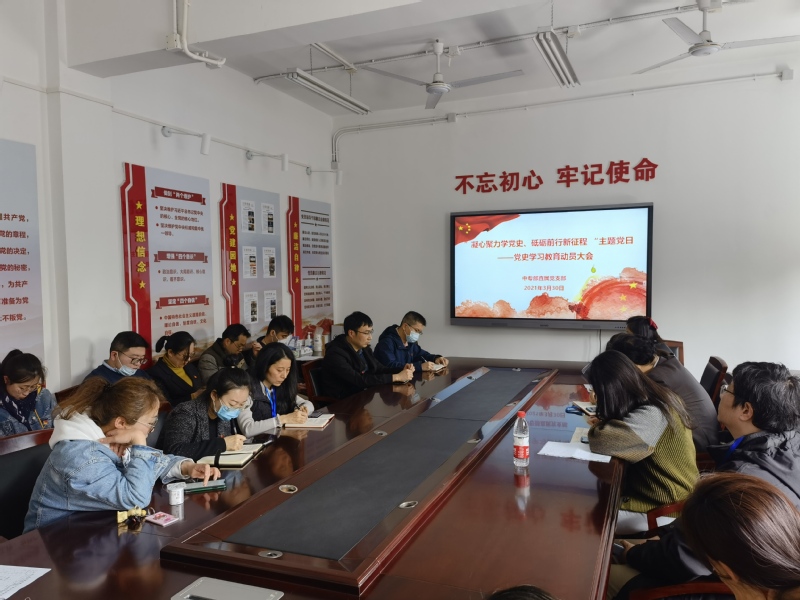 3月30日中午,中专部直属党支部在闵行校区C201召开党史学习教育动员大会暨“凝心聚力学党史、砥砺前行新征程”主题党日活动,深入学习贯彻习近平总书记在党史学习教育动员大会上的重要讲话精神,对支部党史学习教育工作进行安排部署。全体党员教师参加会议,会议由党办主任王香玉主持。