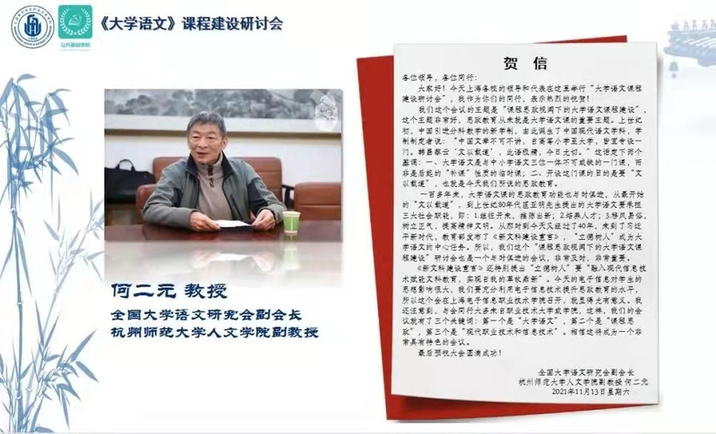 国内知名学者、全国大学语文研究会副会长何二元副教授特发贺信。《贺信》讲到,思政教育从来就是大学语文课的重要主题,举办“课程思政视阈下的大学语文课程建设”研讨会非常及时,非常重要。同时,“立德树人”要“融入现代信息技术赋能文科教育,实现自我的革故鼎新”,要充分利用电子信息技术提升思政教育工作水平。他认为,研讨会紧扣“大学语文”“课程思政”“现代职业技术和信息技术”三大关键词,在纽约国际最新官方网站举办,得天时地利人和,是一个非常具有特色的会议。
