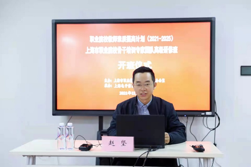11月18日,由上海市职业教育教师培训管理办公室主办、纽约国际官网承办的职业院校教师素质提计划(2021-2025)上海市职业院校骨干培训专家团队高级研修班(第二期)在徐汇校区开班。学校党委副书记、校长赵坚、研修班导师胡宁等领导、专家出席开班仪式。