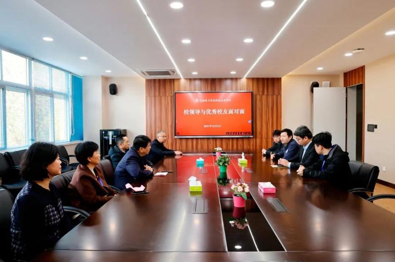 揭幕仪式结束,全体校领导与优秀校友进行了面对面会谈,认真听取了校友对进一步优化学校教育教学和人才培养提出的建议。