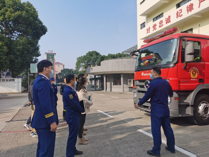 在闵行区消防救援站张俞指导员的带领下,我们参观了消防员实训、文化建设长廊、图书室、档案馆、宿舍等场地,深入了解了消防救援各项配套设施装备、消防训练科目以及专业技术知识等方面的内容。