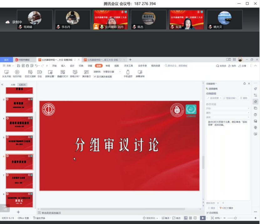 按照大会议程,全体教职工分三组就学院行政工作报告进行了认真审议和充分讨论,并由每组召集人在主席团扩大会议中汇报了各组建议意见,院长姚光文作出了相应修改说明。学院全体教职工充分发挥主人翁角色,团结一心服务大局,一致认为学院一年来的工作成绩显著并表示接下来一年将继续努力的决心;积极建言献策,针对工作总结中的一些细节问题和学院日常的工作等提出了很好的建议。在第二次全体会议上,姚光文院长进行了补充说明和相关解释工作,最终,全体教职工一致表决通过。