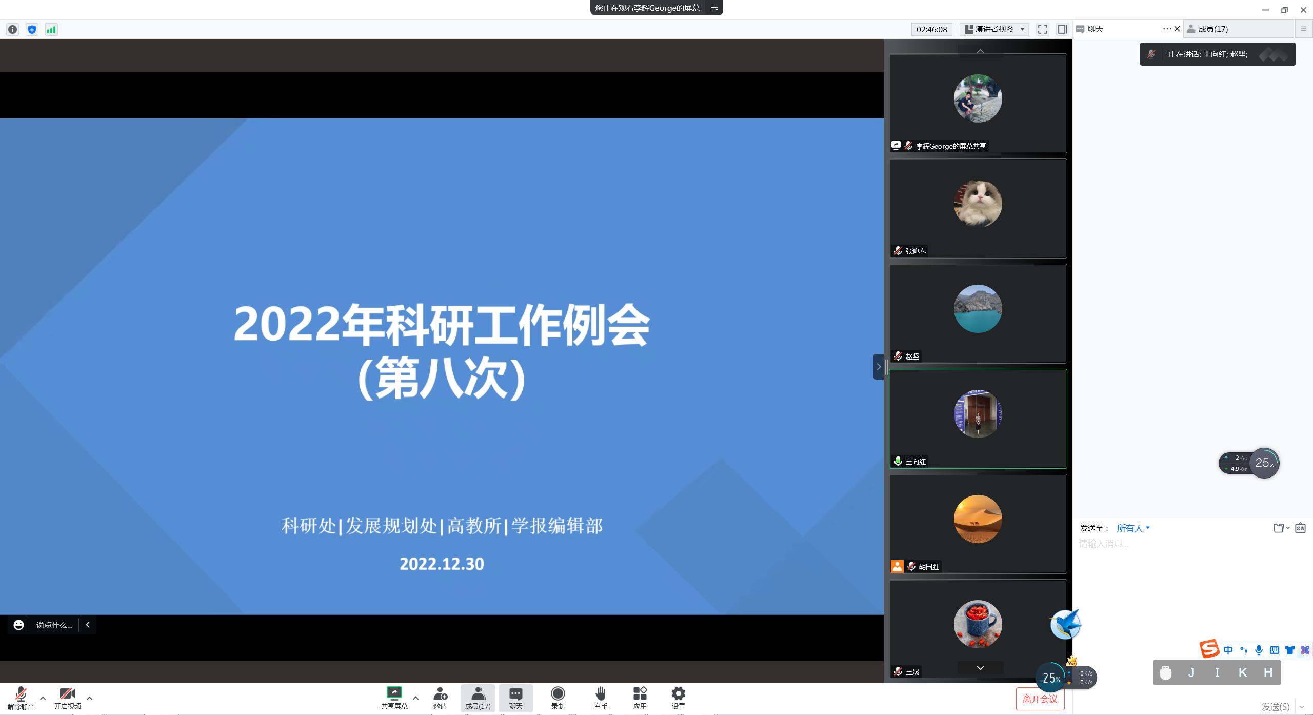 各二级学院负责人围绕科研管理、科研业绩、考核评价、存在问题、2022年度工作总结和2023年度工作目标思路等方面,逐一开展汇报、交流。
