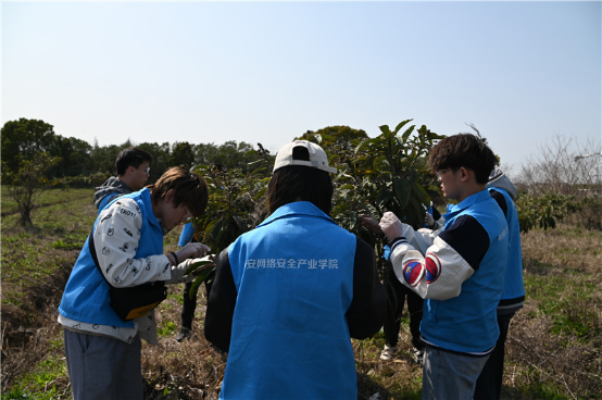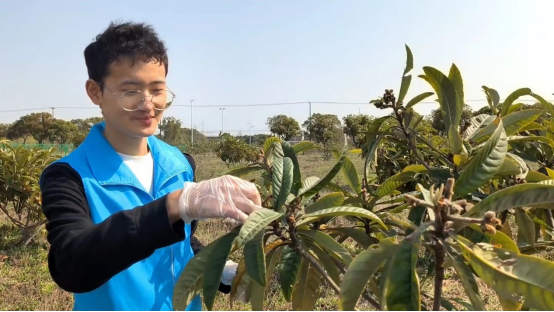 在联合活动基地成立仪式后,师生一行在村干部和种植专家的带领下在北新村枇杷园开展疏花疏果劳动。