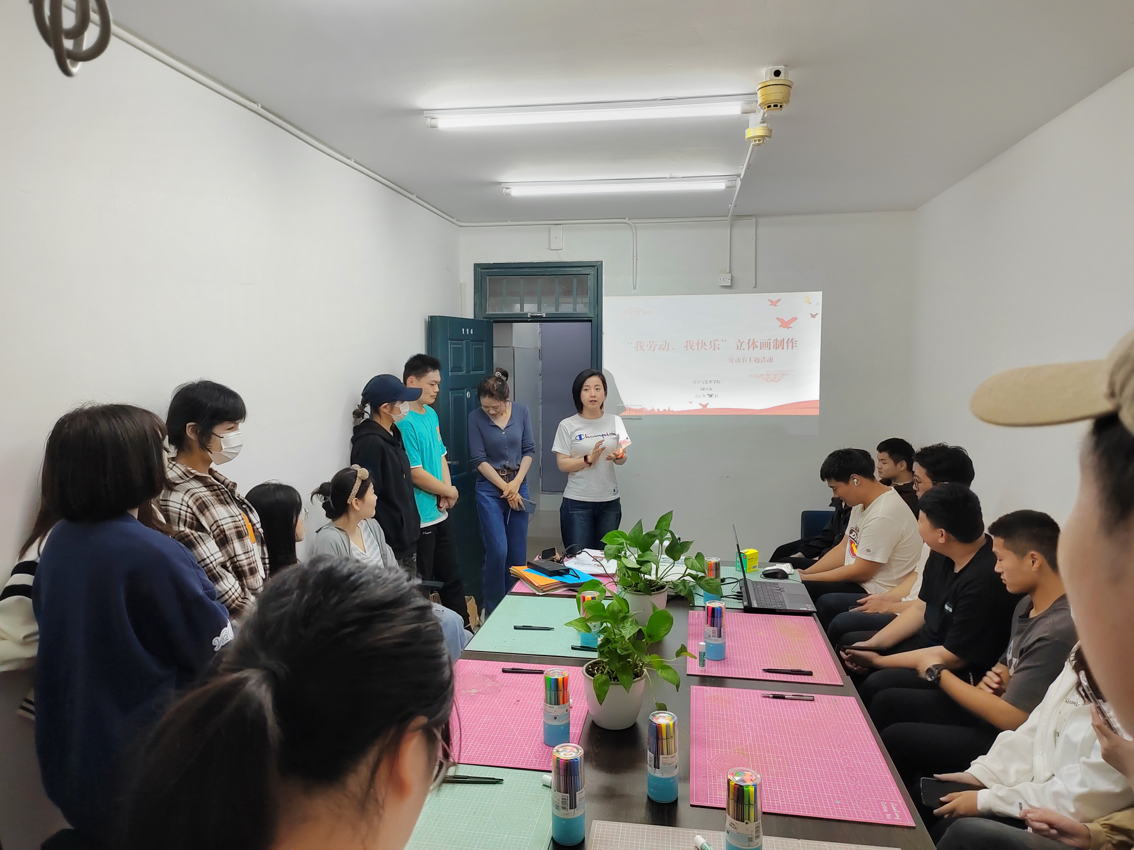 为丰富假期留校学生生活,营造劳动光荣的风尚和精益求精的校园风气,5月3日下午,设计与艺术学院联合园区办在学校“一站式”学生社区组织开展“我动手,我快乐”立体画手工制作活动。设艺党总支书记高晓昧、园区办主任卫晓雷与部分设艺学院教师及来自各二级学院30余名学生参与本次活动。