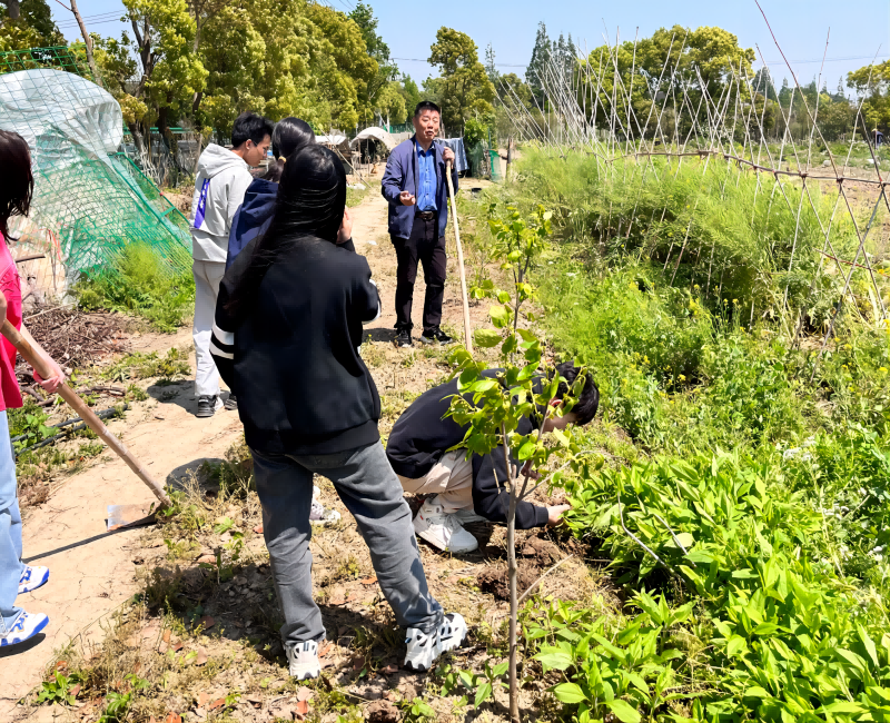 在劳动教育实践基地签约揭牌仪式后,师生一行在技术人员的带领下在生态农场开展采摘、松土劳动,体验劳动带来的幸福与收获。