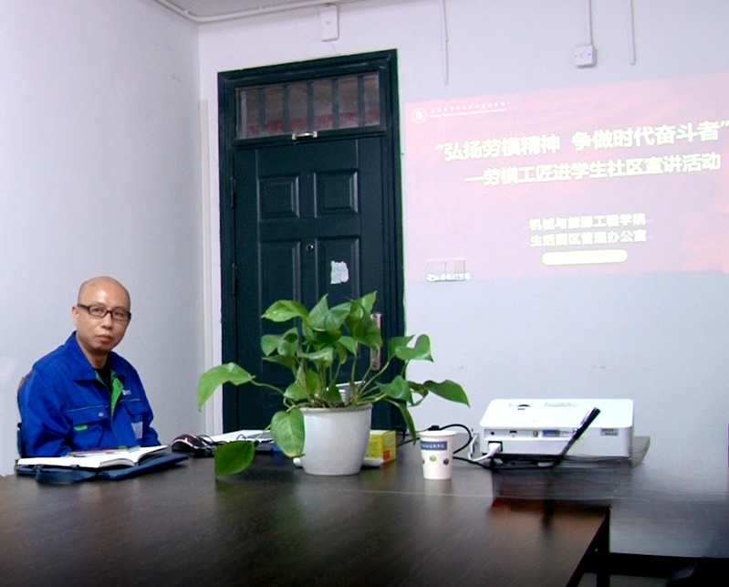 为深入学习贯彻党的二十大精神和习近平总书记关于劳动教育的重要论述,大力弘扬劳模精神、劳动精神和工匠精神,5月5日,机械与能源工程学院联合生活园区管理办公室在学生“一站式”社区活动室开展了“弘扬劳模精神 争做时代奋斗者”主题育人活动。活动邀请全国五一劳动奖章、全国技术能手、全国机械工业劳动模范庄秋峰到校宣讲。学院党政班子成员、学工部卫晓雷、学生党支部党员、易班工作站指导教师及学生代表参加活动。