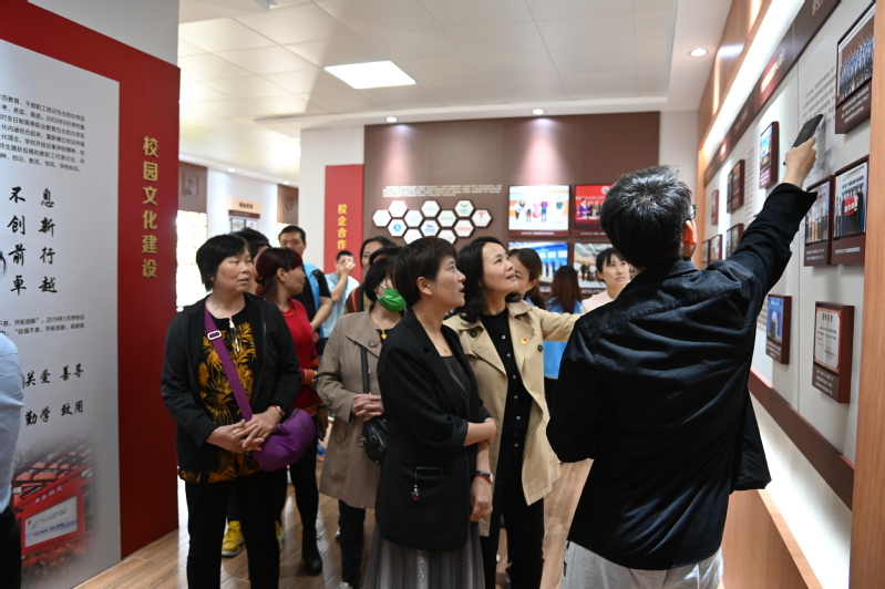 在申安学院师生代表的陪同下,北新村村干部参观了学校教学楼、实训基地、体育馆、毕业林、生活园区等处。申安学院直属党支部书记、院长何永艳全程讲解介绍,展示学院职业教育的办学特色。在校史馆讲解员的生动讲述下,村干部们对学校六十余年的办学历史和发展现状有了进一步了解。