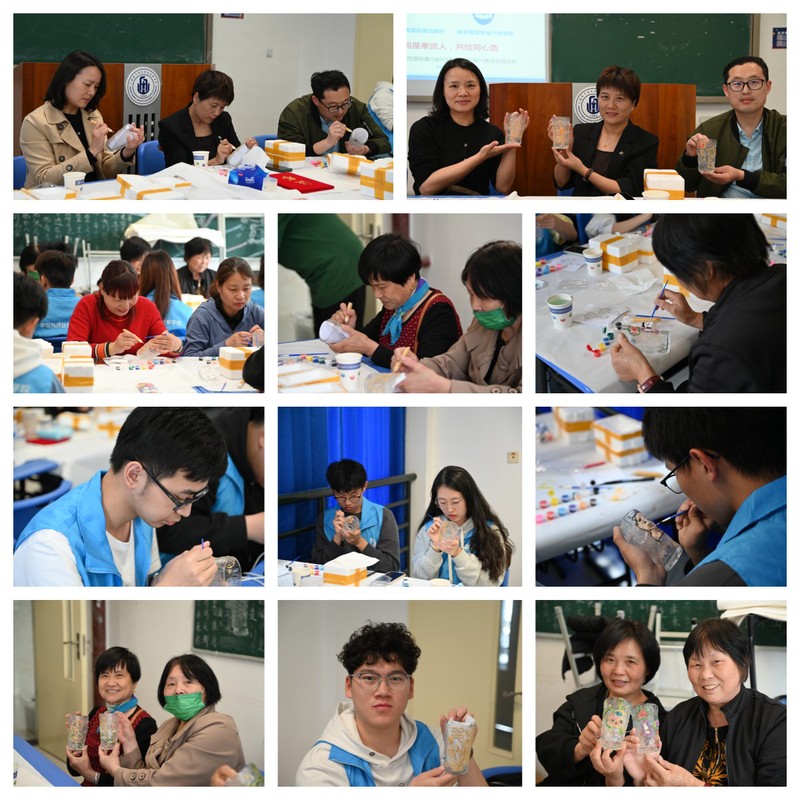 下午13:00,村干部和师生代表共至H302教室开展“同是奉贤人”劳动教育启动仪式暨“共绘同心圆”手绘活动。在启动仪式上,学工部副部长吴奇峰为北新村党总支书记朱伟英颁发村校共建“劳动教育实践基地”合作证书。双方领导围绕当前的合作项目进行交换意见,并就未来的深度合作表达了深切的期望与憧憬。在“共绘同心圆”手绘活动中,与会村干部和同学们共同绘制水杯,以此表达双方“不忘初心、饮水思源”的合作愿景。