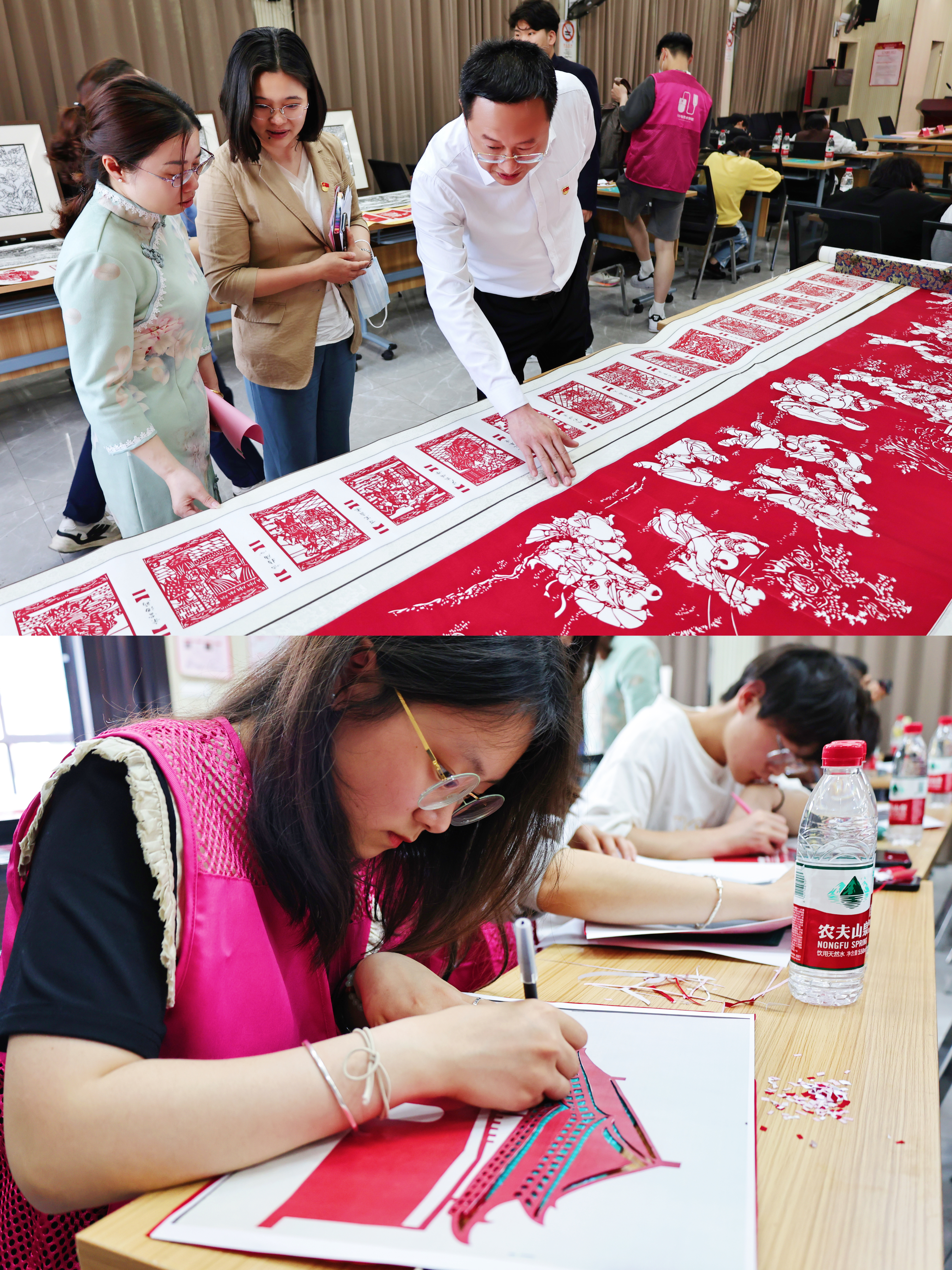 在现场师生们的热烈掌声中,双方完成了党团共建单位及劳动教育校外实践基地的揭牌。仪式结束后,沈丽华老师指导现场师生开展了第一次非遗刻纸体验活动,引导学生在快餐时代将自己沉淀下来,体会中华优秀传统文化的博大精深与深刻内涵。