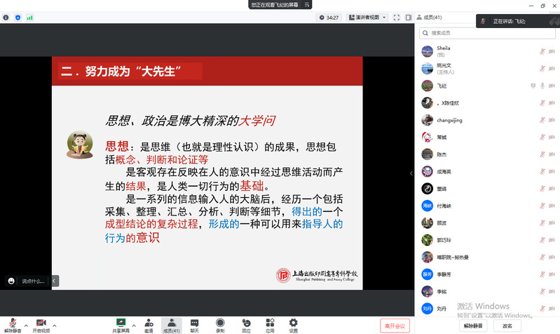 2023年5月29日,上海市课程思政与文化素养教指委专家滕跃民教授应邀为公共基础学院全体教师作课程思政线上培训。培训会由公共基础学院姚光文院长主持。