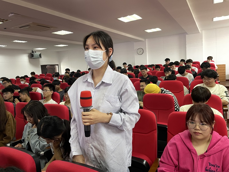 在交流互动环节,同学们踊跃提问,气氛热烈,白老师悉心解答,用亲身经历和人生感悟,向同学们传递了对航海事业的热爱和对理想信念的追求。在场的同学们深深感受到,唯有热爱,可抵岁月漫长,唯有初心,方可掌舵人生,只有坚定理想、不懈努力才能驶向成功的彼岸。学生代表为白老师献上鲜花致敬。
