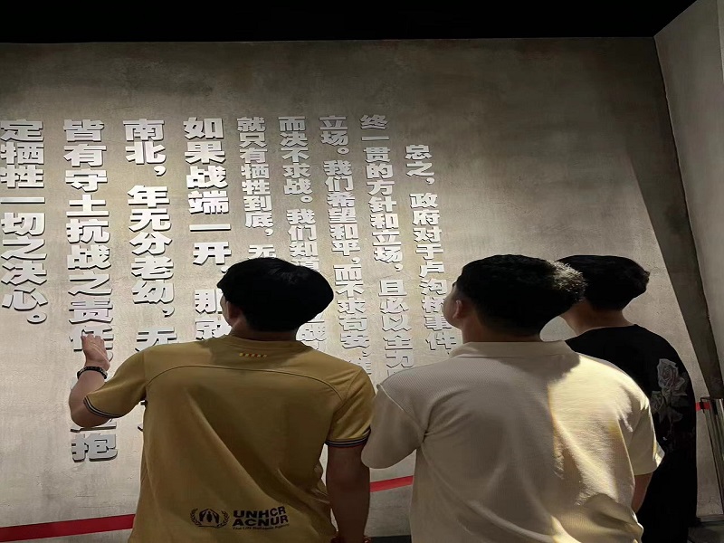 进入纪念馆内,众多战争时期的历史物件与还原当时场景的雕塑令我对壮士们倍感崇敬,正是他们当年英勇战斗、不怕牺牲,才换来了抗战的胜利。作为新时代青年的我们,应牢记历史,砥砺前行。