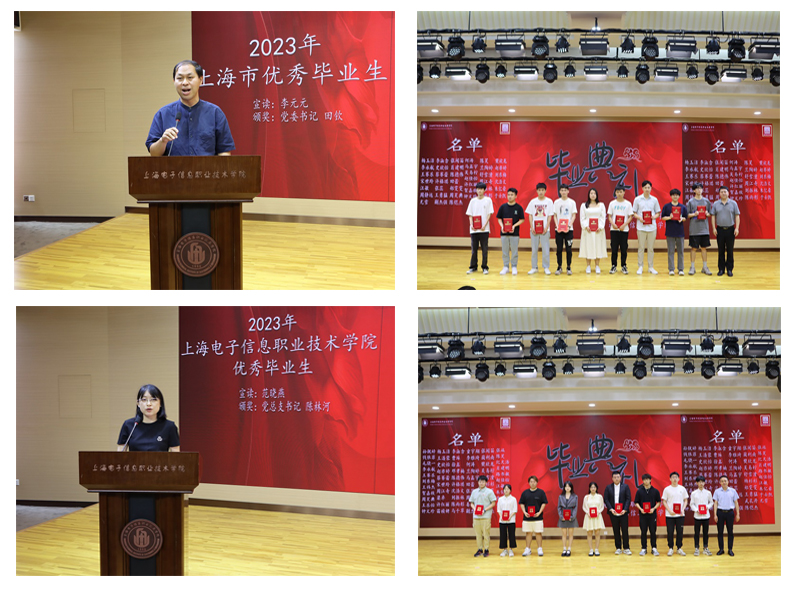 学校党委书记田钦、通信学院负责人先后为上海市及学校优秀毕业生颁发荣誉证书。毕业生代表向辛勤付出的老师代表送上鲜花以示感谢。学弟学妹们用激昂的歌声、优美的舞蹈送别临行的学长学姐。