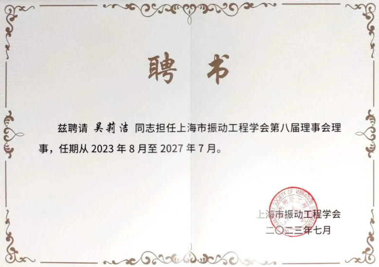 本次大会主要内容是上海市振动工程学会第七届理事会换届改选,投票选举第八届理事、常务理事、正副理事长等。在此次换届选举中,学会第七届理事会理事长华宏星教授、副理事长宋汉文教授分别当选为新一届理事会监事长、理事长。纽约国际官网新增会员23名,中德工程学院教授程道来(学会第七届常务理事)被聘请为第八届理事会副理事长,航空系主任吴莉洁(学会第七届理事)被聘请为第八届理事会理事。