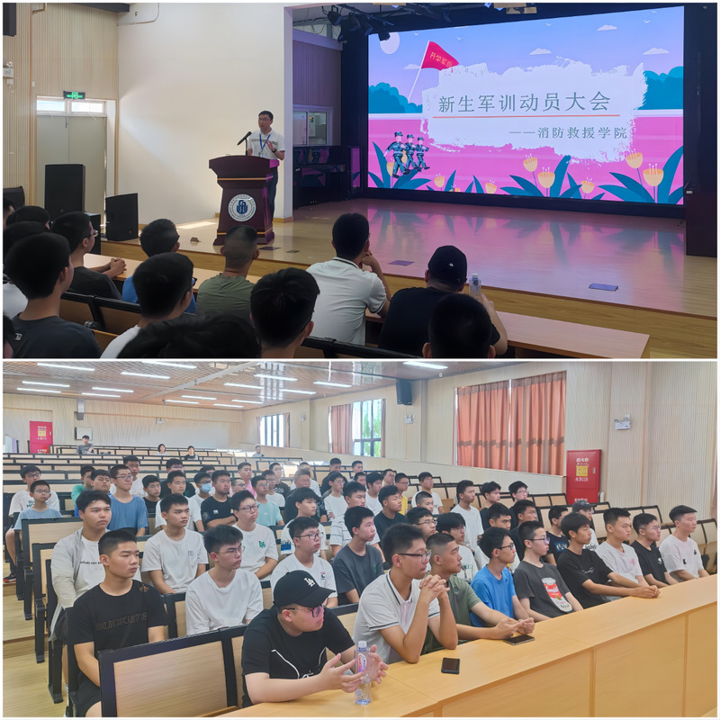 参观结束后,学院召开新生军训动员大会,消防救援学院副院长张帆从训练内容、作息时间和纪律要求、军训注意事项等三个部分对全体新生提出军训要求,要求全体同学以饱满的精神状态投入到训练中,在军训中磨练意志、锻炼体魄。