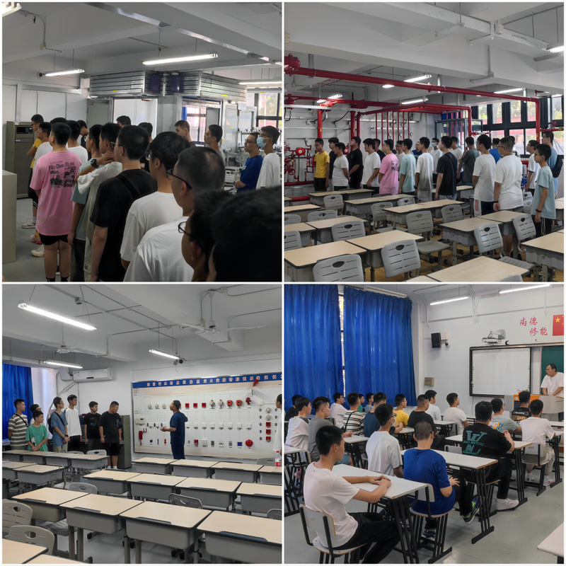 集合完毕后,在班主任老师的带领下,同学们参观了校园和消防专业实训室。在老师的介绍下,同学们简单了解了消防专业实训室的功能和安全注意事项。