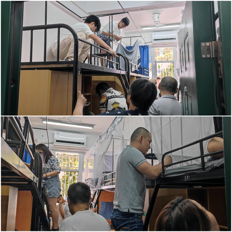在宿舍里,打扫卫生、整理床铺、摆放物品——整理工作正如火如荼地进行着。家长和学生一个个爬上爬下、忙碌奔波的身影,正是充满着对新学校新专业新生活的美好期盼。