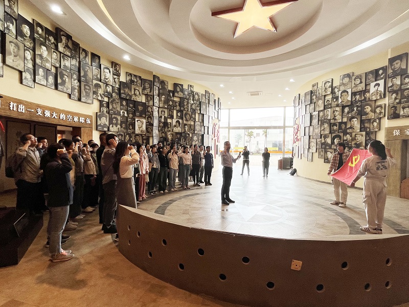 活动伊始,通信学院党总支书记陈林河带领党员重温入党誓词。活动中,场馆解说员结合文献馆陈列物和模拟战道场景,向党员同志讲解了抗美援朝的历史背景和志愿军战士的感人故事;85岁高龄志愿军战士朱俊贤老前辈向党员讲述抗美援朝战争经历,并寄语全体党员,希望大家努力奋斗,勇攀高峰,为实现中华民族伟大复兴继续奋勇向前。