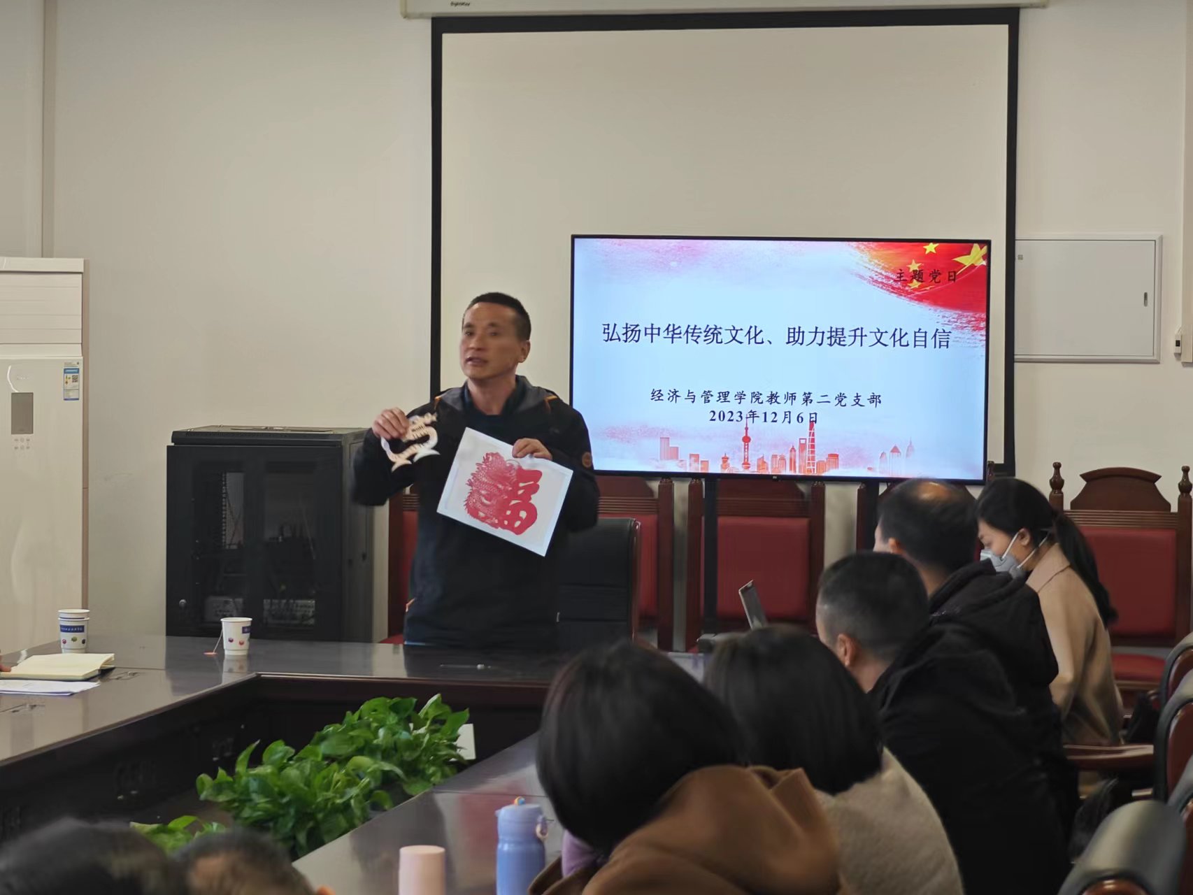 2023年12月6日,经济与管理学院教师第二党支部在金山校区901会议室开展“弘扬中华传统文化、助力提升文化自信”主题党日观摩活动。学校副院长窦争妍、经济与管理学院院长冯江华、党总支副书记王冬梅及经济与管理学院教师第二支部全体党员参加活动,通信学院、马克思主义学院、中德学院等兄弟院系党员代表受邀参加。观摩活动由教师第二党支部书记孙孝花主持。