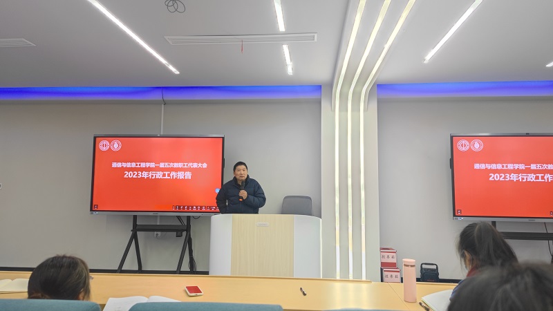 通信学院院长胡国胜作《通信学院2023年行政工作报告》,全面总结了2023年工作开展情况和取得的成绩。党总支书记陈林河就《通信学院年终绩效分配方案(讨论稿)》作编制说明。