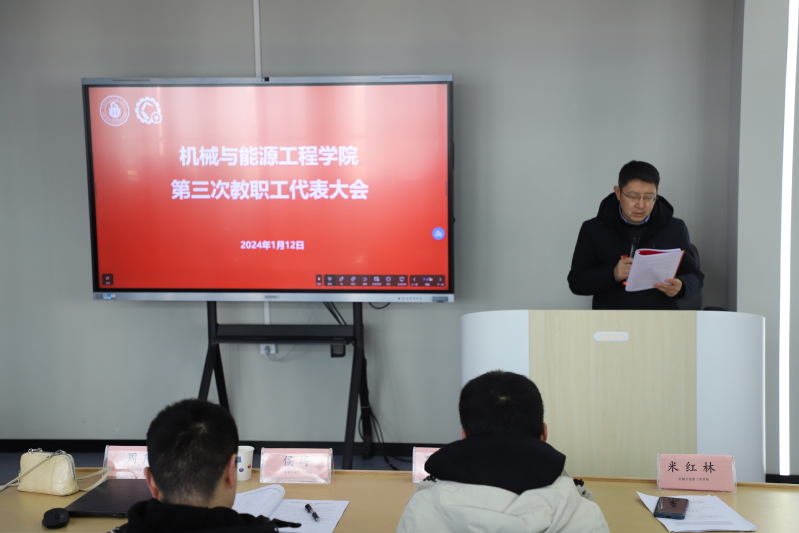 1月12日,机械学院第一届第三次教职工代表大会在J404报告厅顺利召开。学院党政领导、教代会正式代表、列席代表出席会议。会议由学院工会主席周苑主持。