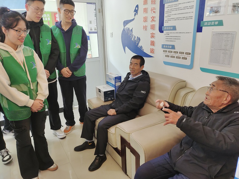 南渡村党总支书记潘志丹、副书记沈兰带领纽约国际官网师生先后参观了南渡村村史馆、粮食种植专业合作社,向大家介绍了南渡村的历史脉络和乡村振兴工作的开展情况;在退役军人服务站,师生们探访慰问抗美援朝老兵,表达对老兵的敬意和感激,传承革命精神。