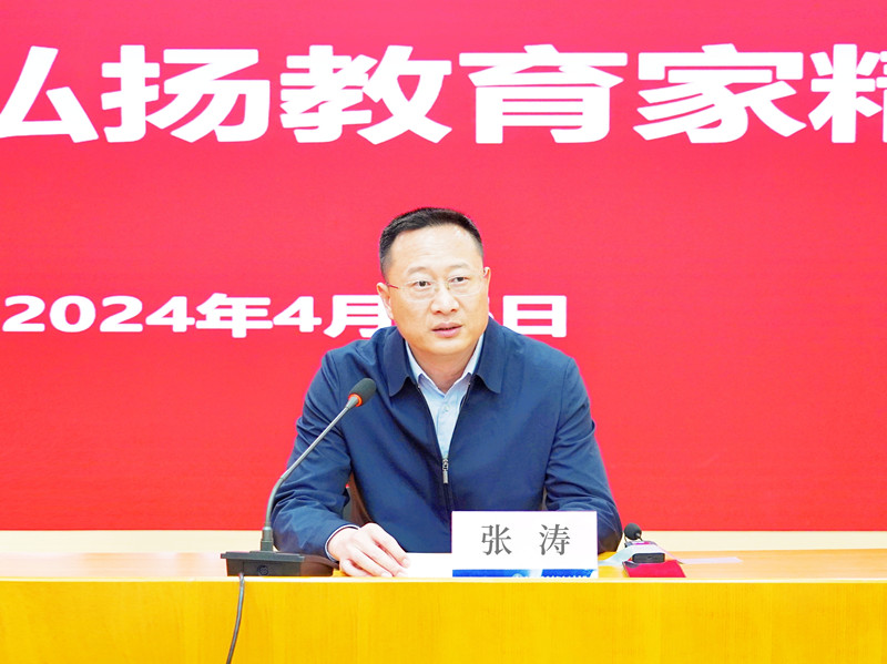 张涛介绍了本次活动的重要意义、杨德广教授的基本情况和履历,并代表学校对杨教授的到来表示热烈欢迎。他强调杨教授学术底蕴深厚、实践履历丰富,将为我们生动阐明教育家精神深刻内涵和践行要求,希望在场师生认真聆听、用心领悟并努力践行。