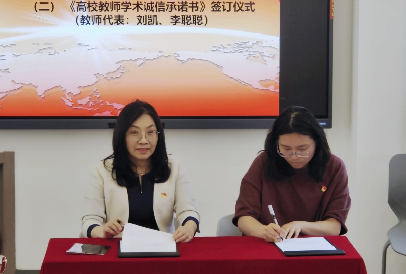 刘凯、李聪聪作为教师代表签署《高校教师学术诚信承诺书》。
