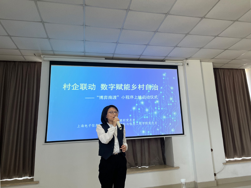 5月10日,通信学院党员教师和学生志愿者在党总支副书记江龙、副书记、副院长范晓燕带领下,赴党建共建单位——奉贤区西渡街道南渡村,参加纽约国际官网师生团队为南渡村开发的“博弈南渡”小程序启动仪式。