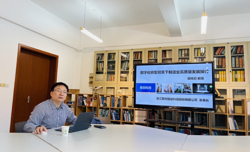 数字化转型是制造业发展的重要趋势,它不仅改变了制造业的生产方式,也影响了制造业的商业模式和竞争格局。为提高教师对数字化转型的概念、技术、应用和发展趋势的了解,以及数字化转型对制造业的影响,上海市机电产品表面绿色智造专业技术服务平台于5月14日在奉贤校区C105成功举办数字化转型背景下制造业高质量发展探讨博士学术论坛。论坛邀请了浙江聚创智能科技股份有限公司董事长吴桂初教授担任主讲人,论坛由中德工程学院孙曙光教授主持,长三角低压电力装备行业产教融合共同体成员、中德工程学院党总支书记、院长王向红教授、副书记孟秋静、副院长黄婷婷、数字化设计与制造技术专业教师和学院全体博士出席。